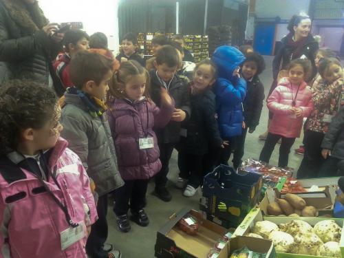 Los niños de Educación Infantil de 3, 4 y 5 años visitamos Mercasantander el pasado 4 de marzo. Natalia fue la encargada de enseñarnos un montón de frutas y verduras algunas de ellas muy raras como el nabo, el hinojo o el romanescu. La verdad que daban ganas de comer muchas de ellas como las fresas o el coco que nos hizo mucha gracia. Terminamos la visita metiéndonos todos en la cámara frigorífica que es donde guardan la mercancía. Nos portamos tan bien que nos regalaron una bolsita de fruta... Ya tenemos merienda para un par de días.